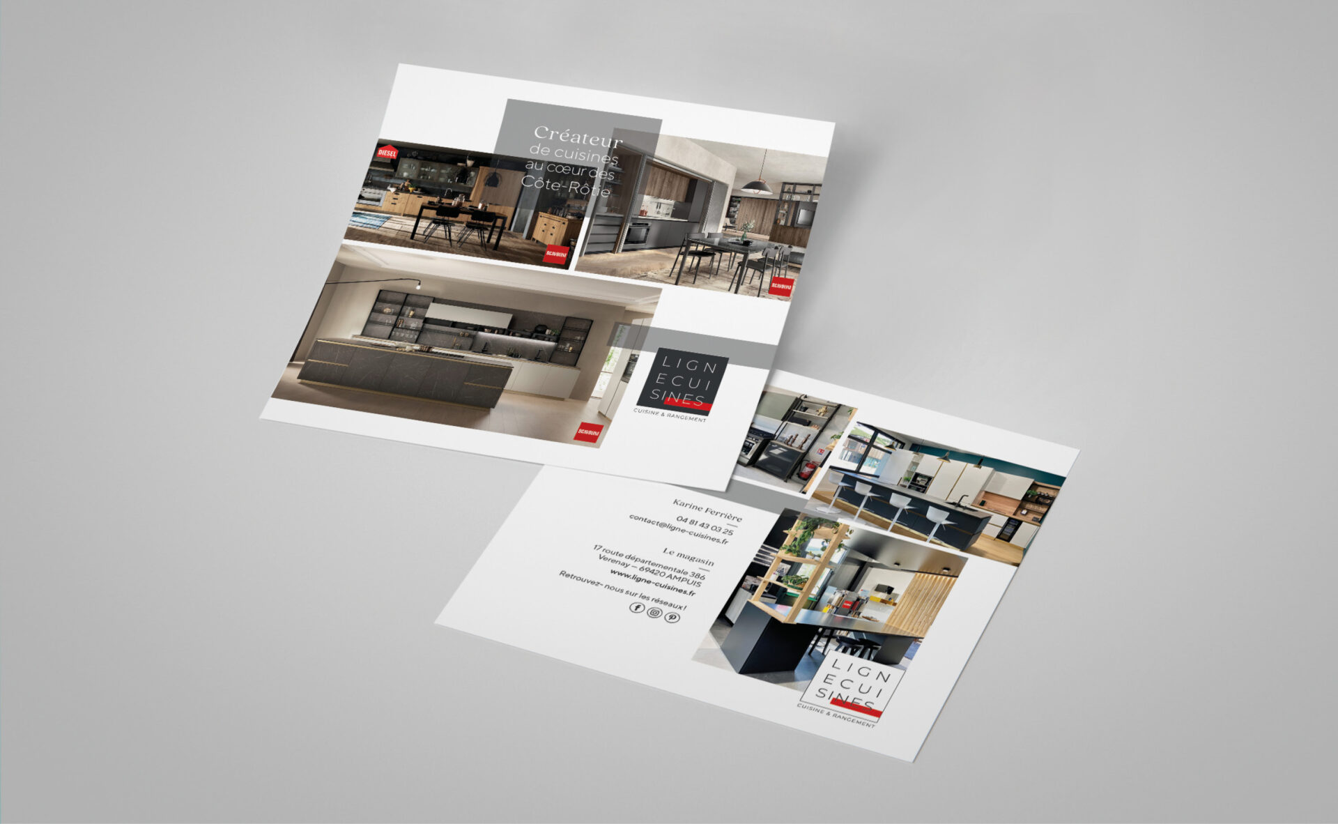• Mise en page d’un flyer recto/verso pour le cuisiniste Ligne Cuisines